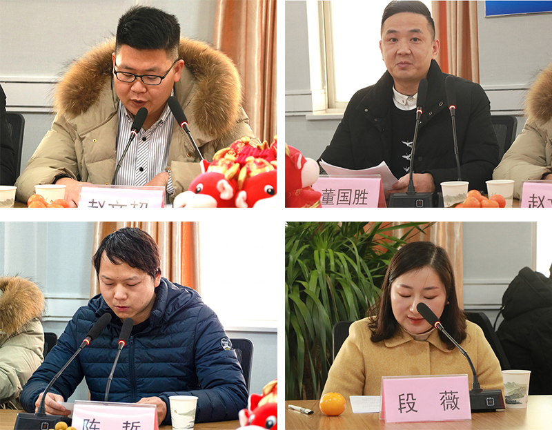 上图:和缬H01平台经理赵文超、H02平台经理董国胜、自媒体经理陈哲、行政人事总监段薇分别进行工作总结